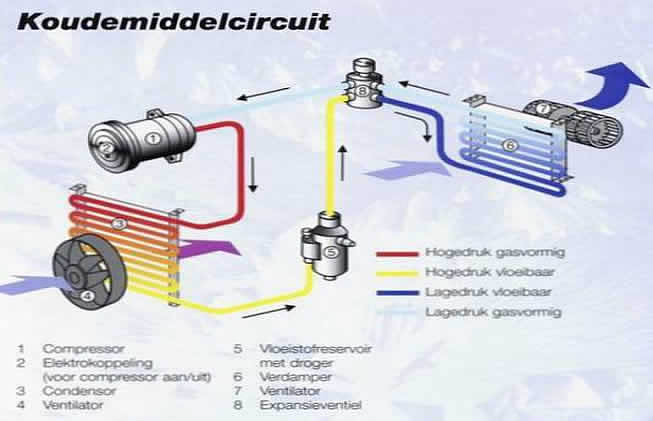 Het is weer voorjaar en de eerste zomerse dagen zijn al weer achter de rug. Dus weer de hoogste tijd om U aircosysteem te laten controleren. Uw aircosysteem is gevuld met koudemiddel en bestaat uit diverse onderhouds gevoelige onderdelen (zie illustratie) waardoor om de 2 jaar onderhoud noodzakelijk is.